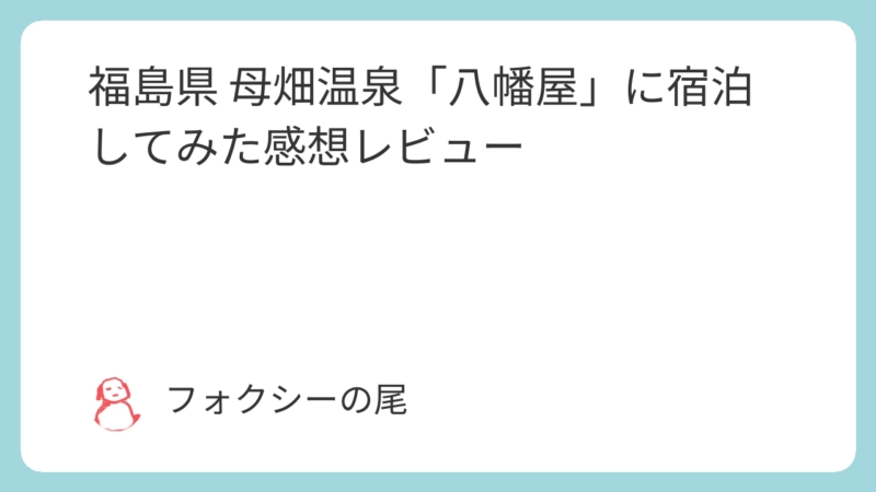 以上、福島県 母畑温泉「八幡屋」に宿泊した感想レビューでした。これから訪れる方の参考になれば嬉しいです。